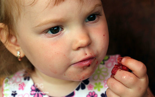 трескает земляничку,пробабушка прислала