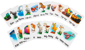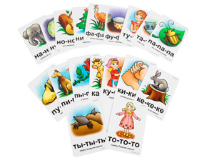 Их тоже 18 шт и они двухсторонние, на обратной стороне предлагается рифмовка по окончанию которой нужно выдержать паузы и побудить тем самым мылыша закончить фразу. Здесь же на 3 этапе в нашей жизни появится волчонок Веня
