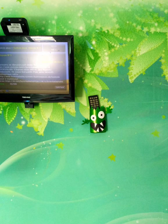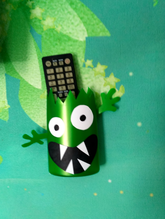 Держатель для пульта из старой бутылки от шампуня:) детки в восторге!