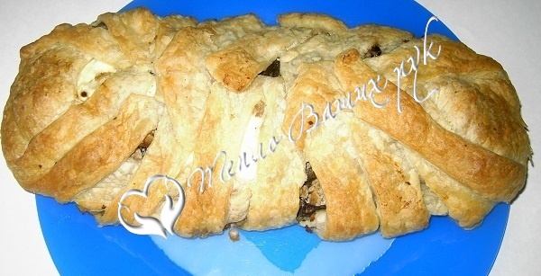 Во второй день мы пекли пирог из слоеного бездрожжевого теста, начинка у меня была курица с грибами, в первый раз в жизни я делала мясной пирог, и еще плела косички из теста в первый раз. Понравилось!
