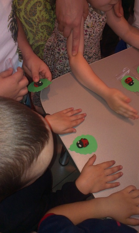 В конце дети лепили божью коровку из радужного песка, ее мы забрали с собой.