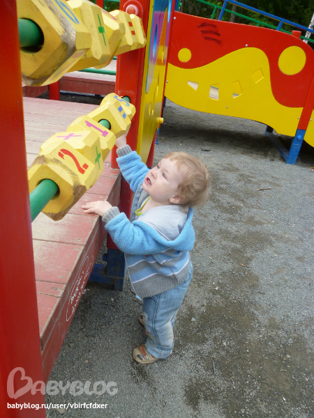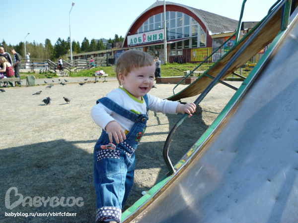 Саша обожает горки и терзаем маму, чтобы она его скатывала...