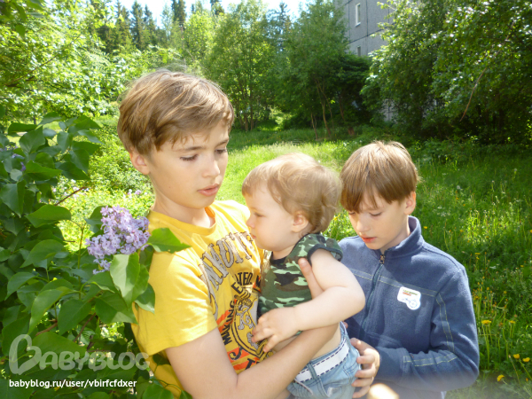 Наконец-то поймала всех трех вместе!!! старших удалось выгнать на улицу:))