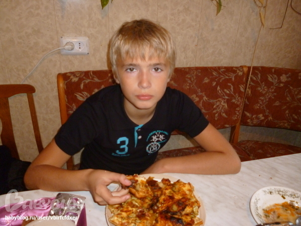 Ну и фото нашего именника- сидит с праздничной пиццей:)