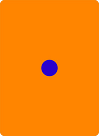 Изготовить оранжевую карточку очень просто из цветного картона. Достаточно отрезать оранжевый картон размером примерно 15*20 см и в центр поместить синюю точку диаметром 2 см.