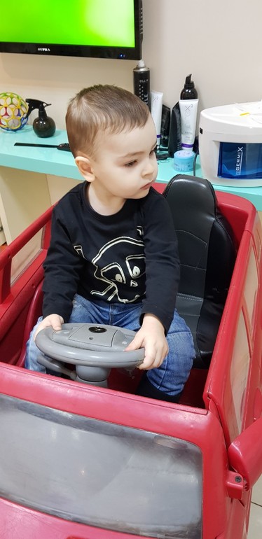 Ну и в связи с тем что мы теперь с полным правом называемся уже не груднички мы отправились в самую настоящую парикмахерскую...в детскую парикмахерскую "Воображуля" и сделали самую первую стрижку)))...Понравилось ему там очень очень)))....облизывал чупа чупс, смотрел любимый мультик про Ми ми мишек и восседал на машине)))) Правда крутился и всячески мешал мастеру делать своё дело, но она старалась как могла не маячить у него перед носом😊....всё прошло без слёз😌
