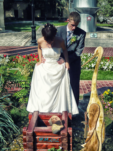 Поздравляю вас! Обожаю свадебные фотки ммм..платье нежное и вы крвсавцы,правла видно плохо-)