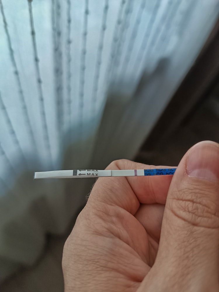У меня с б показал за 4 дня до м слабую, в первый день задержки уже яркую. Цикл 28 дней.