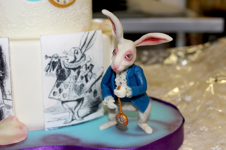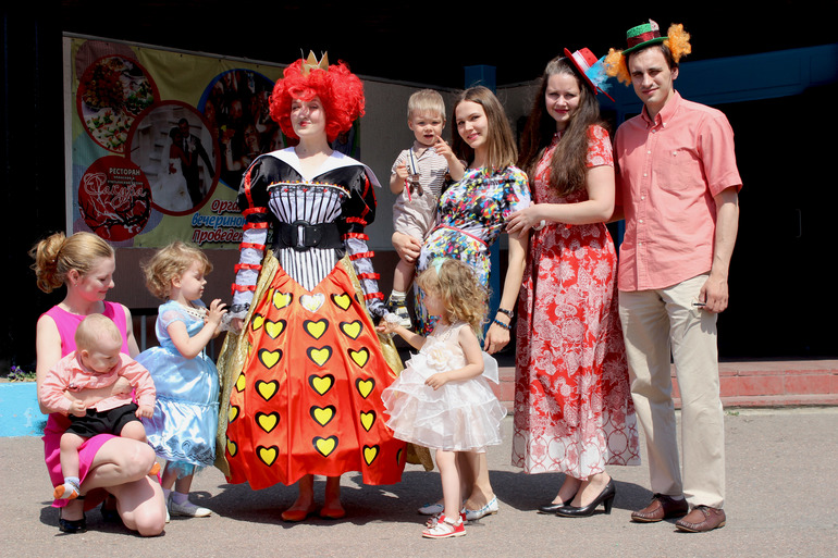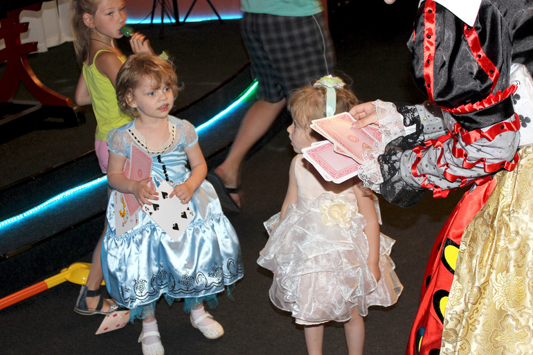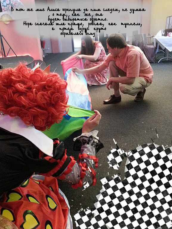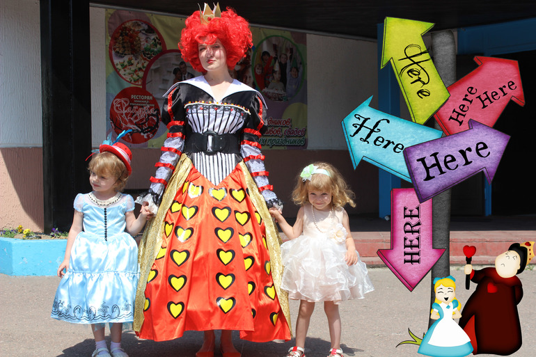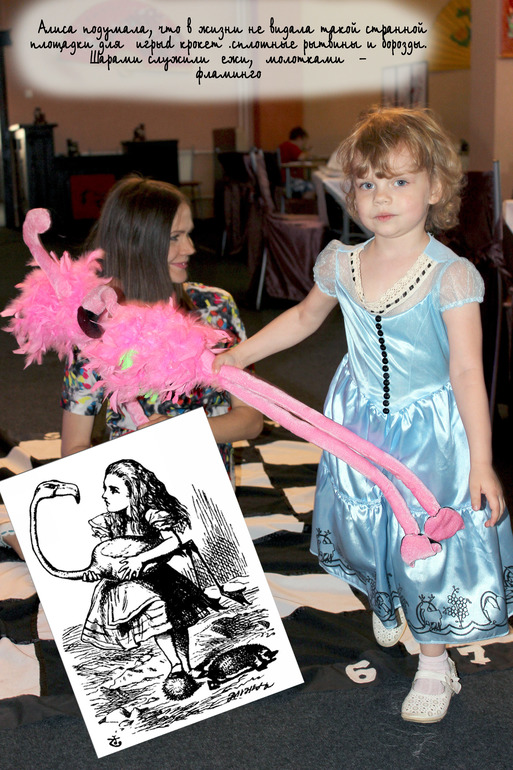 Для деток был приглашен аниматр. Поиску его , я уделила большре значение, ведь уже заранее знала что хочу, и к счастью не прогадала! Аниматора я нашла в Одинцово, девочка все отработала на большее, чем от нек ожидалась!Все конкурсы и игры были только в стиле Алисы. Детки красили розы в королевском саду, собирали разбросанные карты, проползали через кроличью нору, и конечно же был королевский крокет с фламинго и ежом!