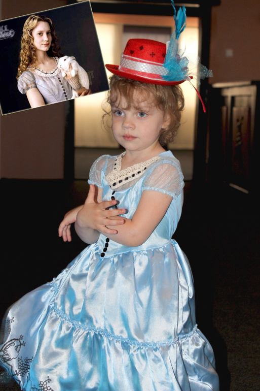 С выбором наряда я долго определялась... Перелистав не мало сайтов с идеями и тем что уже предлогалась в готовом варианте, решала остановиться на двух! Первый- это идентичное платье по фильму "Алисы в стране чудес" ,а второй наряд был юбкой пачкой ( я сама ее сделала ) в комплекте с футболочкой " фламинго" и шлапкой( тоже мое творчество)