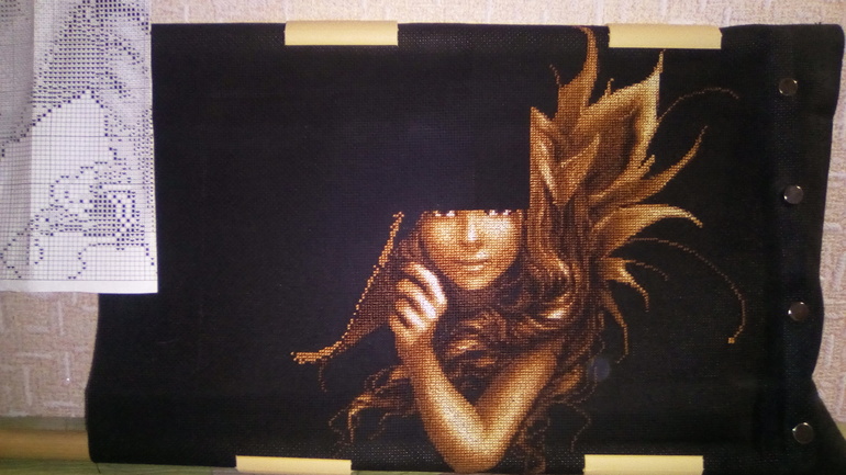 Давно хотела вышить фею из набора "Золотое руно". На конец то мечта сбылась, и я её приобрела, и вот уже третий месяц ,как мне трудно её вышивать ,нудно , что то мне не нравиться не знаю, конечно я ее до вышиваю не люблю когда работа не доделана валяется.