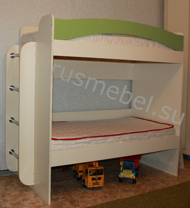 Здравствуйте)) Вот эта модель инересует? дно цельное, не реечное, размеры на фото по матрасу 70*150 верхний и 68*146 нижний, примерно до 8-10 лет! а в обще возможно заказать в любом цвете и размере! Работаем с ЛДСП Эггер!