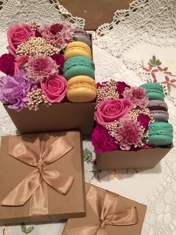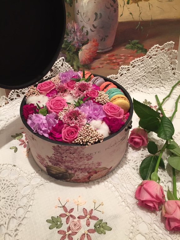 Цветы и макаруны в коробке-прекрасный подарок на любой повод!