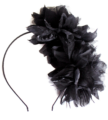 • Очень женственный и воздушный ободок: украшение похоже то на трепещущие цветочные лепестки, то на нежные лебединые перышки.