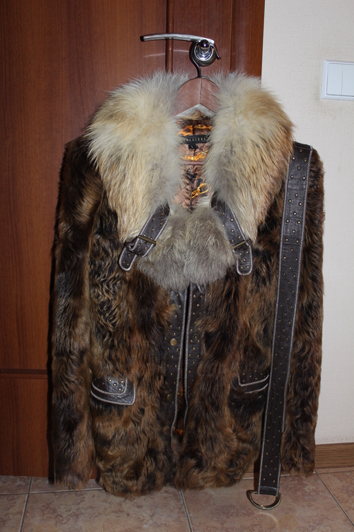 3. Полушубок из козлика, воротник из лисы, пояс и отделка кожаные. На 46 размер. Очень теплый! 3500 руб.![]()