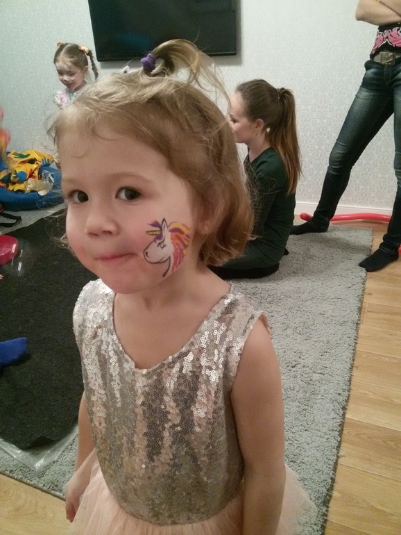 По приходу домой ее ждали шарики и стол для угощений, я немного готовила. Потом подтянулись гости, мои братья, племяшки, и подруга с сыном. К 7 пришла аниматор и повеселила детей, мыльные пузыри, аквагрим, вынос торта и хлопушки. Очень много конфетти, очень много))) кто знал что в Эльдорадо такие мощные залпы конфетти хлопушек))