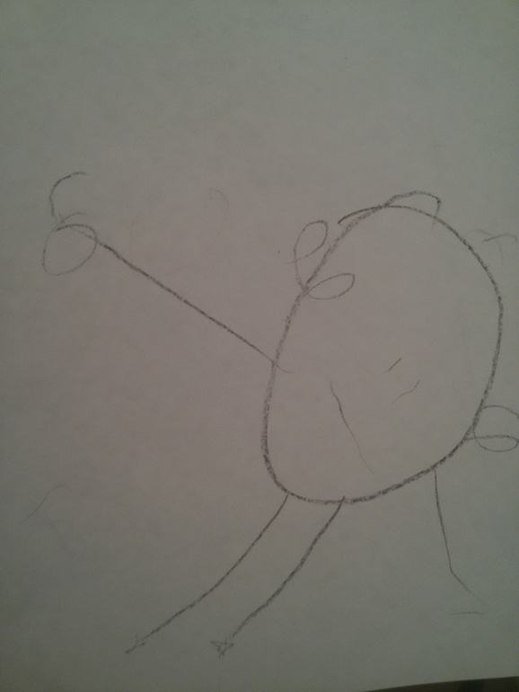 Семейная жизньЯ ничего не трогала, в этот раз голову=туловише нарисовала сама) по словам Дианы это кошка, в одной руке шарик ( вверх ногами, в другой сумка) на ногах ботинки ))))а еще ушки и шляпа на голове))))уффф так смешно... у нас все листки в головононах этот пойду сохраню на память) 2года 3месяца. Любимый цвет черный ага)))