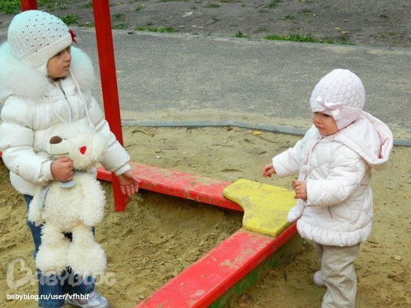 Верунчик научилась бегать, танцевать, говорить как киса мяу, как собачка а-а-а, как коровка- муу, при этом губки вперёд делает, смешно так, на фото видно)) осознанно говорит мама, папа. Ревнивая очень,думала старшая будет ревновать,а оказалась младшая)) У нас пока 4 зубика, воруем всё со стола, даже умудрилась попробовать пельмень, старшая-то их просто обожает)) А вообще аппетит такой, что без разницы что и сколько, всё съест, хотя по весу мы дюймовочки всего 7800))интересно есть такие?=)) Ну и фото моих дочурок)