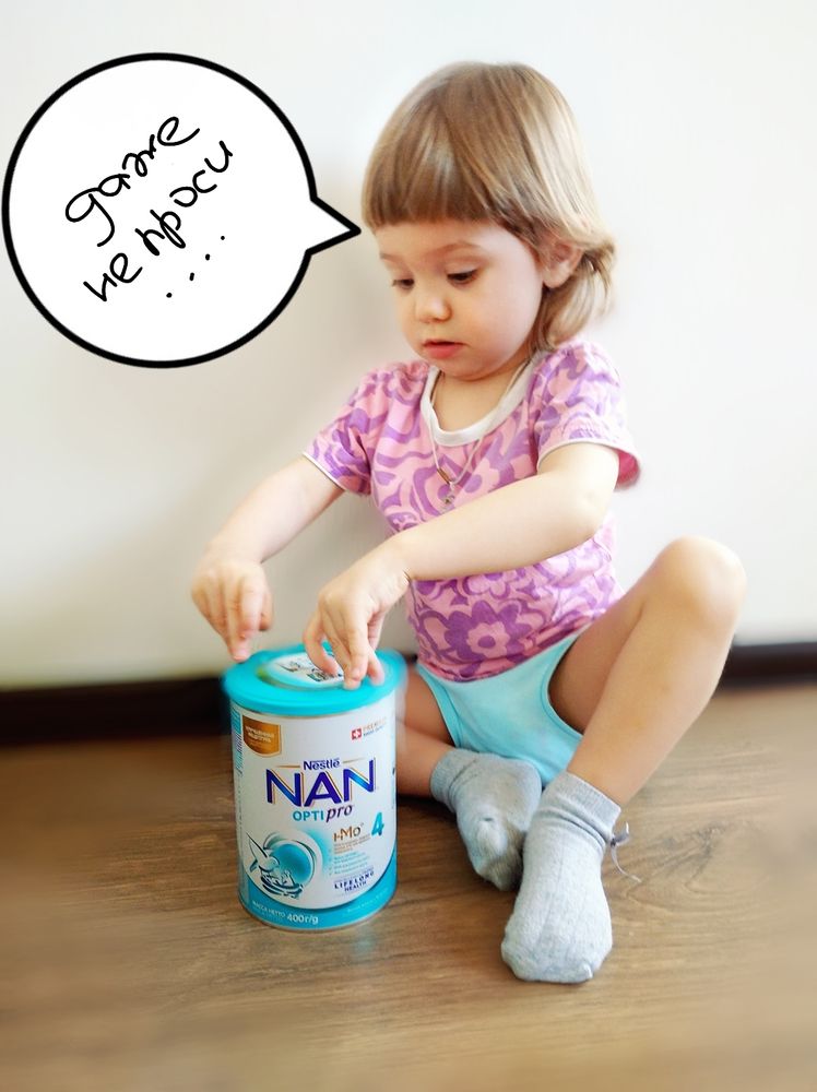 Не так давно Соня практически отказалась от всего молочного. Кашу ест только на воде, биолакты и йогурты детские не пьет, молоко кстати тоже. В рационе из молочного остался только детский творожок, и то, только с определенным вкусом, и вот каша ( она же все равно типа молочная, даже если и развела я ее водой). Также Соня до сих пор на ГВ и у меня была надежда, что детским молочком мы полностью заменим это дело, как раз нам его прислали на пробу. Но не тут то было) Честно, молочко NAN 4 от Nestle очень вкусное, я всегда все пробую, прежде чем давать ребенку, но София категорически от него отказалась.