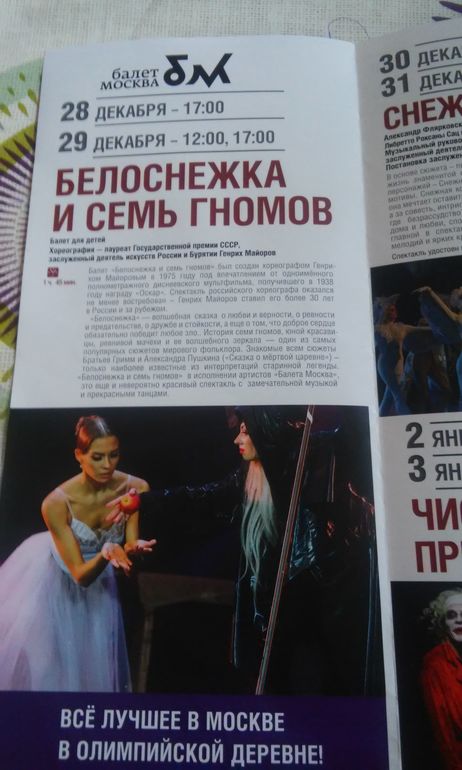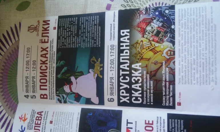 Мы лично купили билеты на Белоснежку, Снежную королеву и "В поисках ёлки". Подумываем о Мандариновом ангеле. По цене за 3 спектакля получилось как за одних Фиксиков в Крокусе.