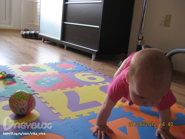 Да далеко))) называется пазлы-маты, из них потом можно большие кубы собирать. Покупали в магазине у нас продаются. Удобно.))) На одеяле если ногами перебирает, оно соскальзывает. а тут хорошо, все прямо. Сразу результат на лицо)))