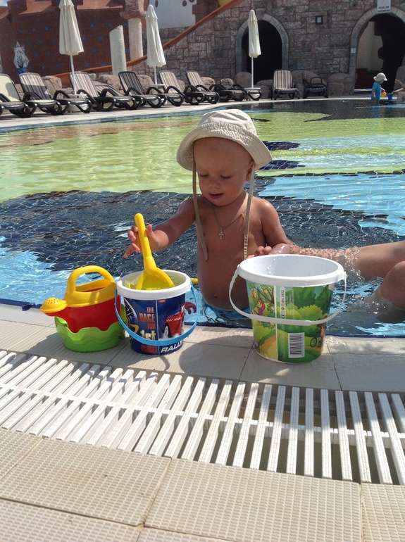 Давно не писала тк с 15 августа были на море! За два месяца были в двух странах: Болгария(22дня) и Турция(16 дней). Перелет переносит отлично! Утренние рейсы были и досыпал уже в небе! Две разных страны. В Болгарию низкие цены на все, но сервис отсутствует. Не понравилось море и пляж все грязное и все платное(((((( и какое то двоякое мнение вроде бы еще раз можно съездить, а с другой стороны для деток там нет ничего(((( Турция в этом плане выигрывает! Там мы ходили каждый вечер на мини диско-сначалр боялся сынок и смотрел на все с рук, а дней через 4-5 стал сам туда бегать! Там научился танцевать, кружится и хлопать!)))) я всегда любила Турцию, а с детками там рай, особенно лет с 3х. Со своим мы ходили и в аквапарк, и в детский бассейн. Ел в основном с обещего стола, а в Болгарии банки там покупали. В Турции заболели под конец отдыха-легкой формой ротовирусом, долечивались уже по приезду.(((( но и это нас не огорчило. Отдохнули, назагорались( Никитосик вообще нигретенок). Никита полторы недели привыкал к холоду, гулять не хочет, одеваться не хочет на улицу, сидит в коляске и не выхрдит.
