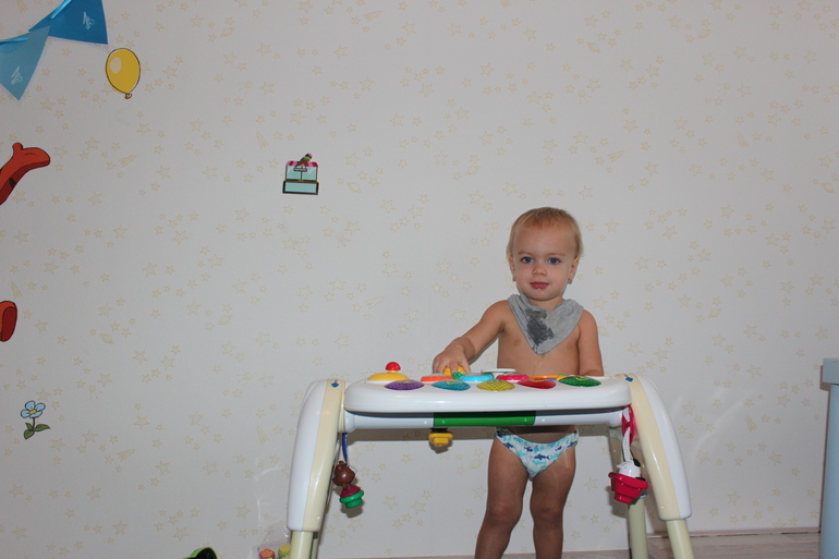 Любит машины,автобусы. Уже несколько раз просто ездили на автобусе до конечной остановки и назад. на улице много ходит,но бывает такое что постоянно просится на руки(((. Любит катать машинки. стал иногда сам играть. Любит лазить в трубе из Икеи. Любит дуриться, валяться в подушках.