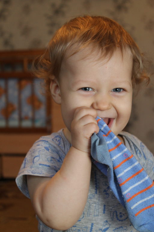 Это чудо крадет носки и радостный носится по квартире)))Иногда это носок в зубах и носок в руках)))На самом носки задерживаются на 3 минуты и тут же один в рот,второй в руку и побежаааал счастливый)))