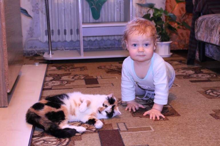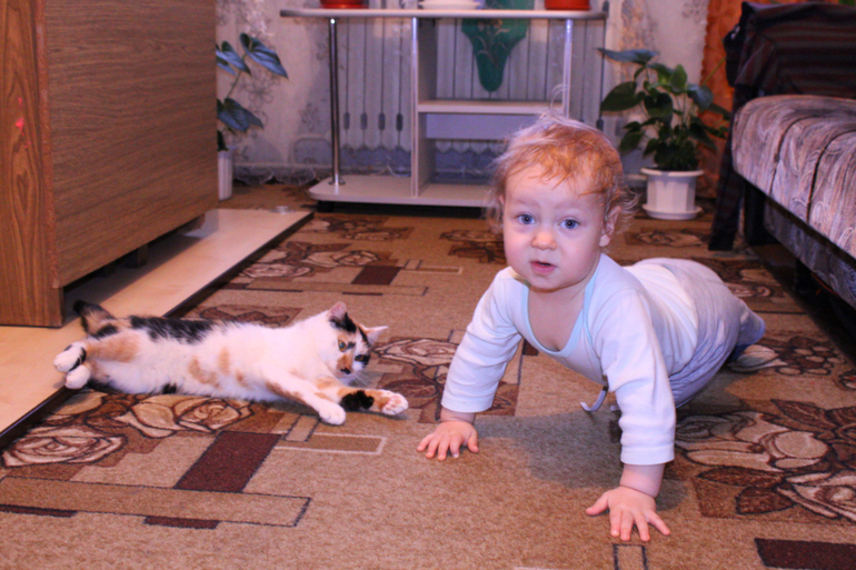 Обожает Никиту.Просыпается и сразу к нему в комнату летит))
