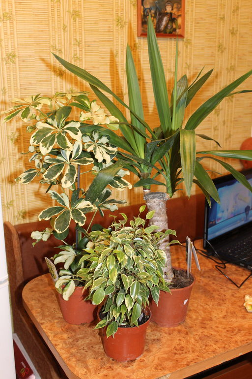 Теперь у меня есть Шефлера пестролистная, Фикус Бенжамина мелколистный и Юкка