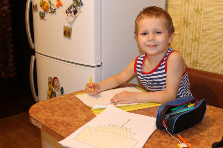 Нарисовали и вырезали торт (делала я) и звездочки с цифрами (рисовал и разукрашивал Никита).Цифры писала я его рукой.Все это скрепили ниточкой и повесили над кроватью.Начиная со вторника перед садом будет по одной циферке отрезать.Когда цифер не останется-придет День рождения,который Никита ждет уже с сентября))