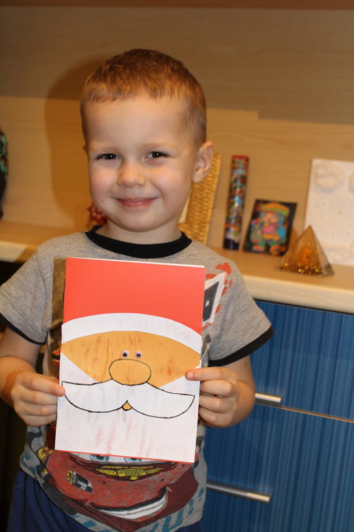 Сегодня слепили с сыном вот такую открыточке бабушке.Сегодня в сад некому отвести его было,поэтому занимаемся дома.
