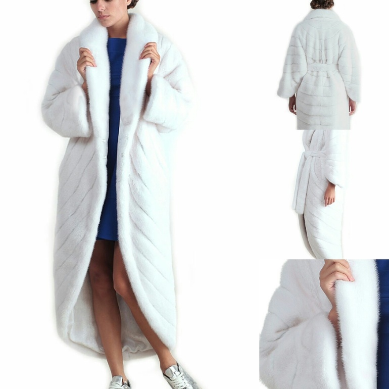 Данное изделие соответствует своему размеру. Выбирайте свой обычный размер. Дизайнерская норковая шуба Филлини от Charisma. Модная, эксклюзивная модель российских дизайнеров выполнена из ценного меха норки. Изделие представлено в чисто белом цвете. Длинная, почти до пола, шуба имеет просторный силуэт, на талии завязывается на меховой пояс. Шикарный мех норки сам по себе является непревзойдённым украшением, поэтому изделие не перегружено никакими дополнительными деталями. Набросив на плечи эту роскошную шубу, любая женщина будет чувствовать себя королевой. Натуральный мех не даст замерзнуть даже в лютые морозы, а необычный белоснежный цвет норки неизменно привлечет внимание окружающих. С чем бы вы ни надели эту шубу, ваш образ будет достоин обложки модного глянцевого журнала.