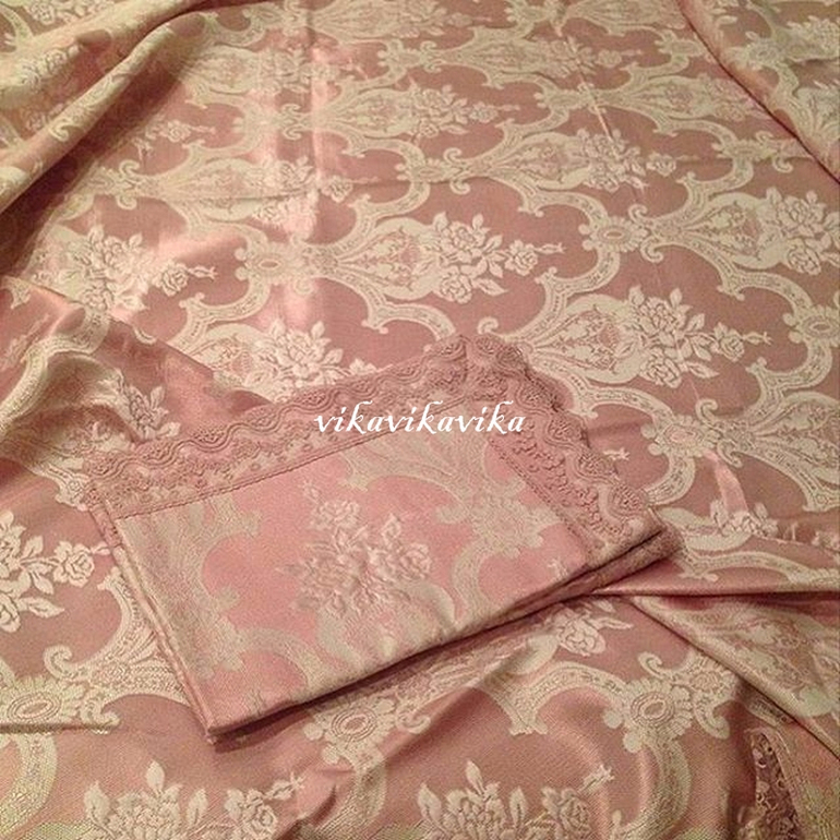 №9 Комплект покрывало, простыня и 5 наволочек из сатина и гобелена с гипюром. Для королевских особ.