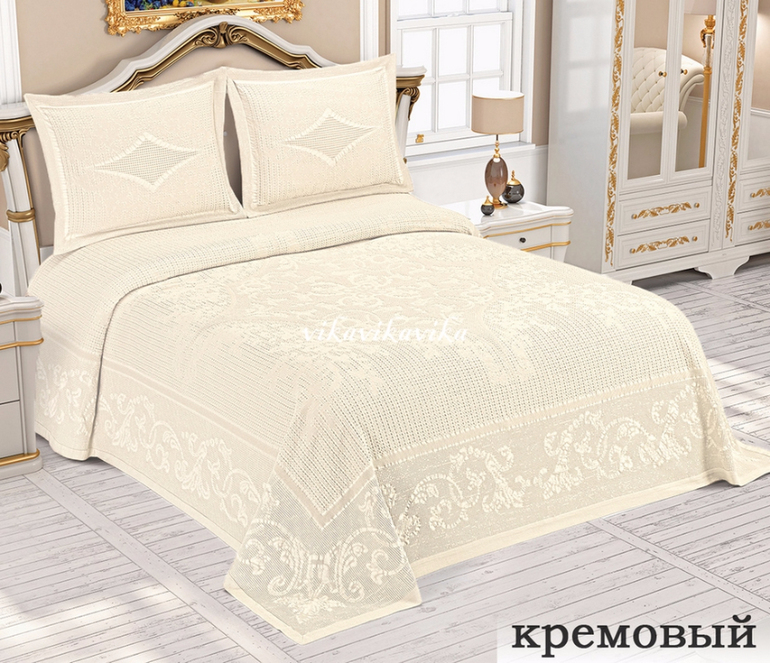 № 5 Покрывало жаккард с гипюром, из натурального хлопка