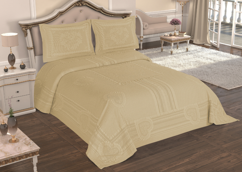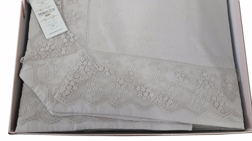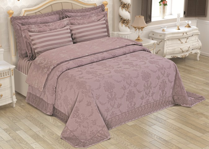 № 33 КПБ С Покрывалом хлопковым 100% класса люкс с кружевом 260х260 см + 2 наволочки 50х70 см,
