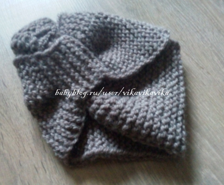 Такой снуд-шарф не нужно завязывать и он универсален, можно носить как повязку на голову, тоже красиво)