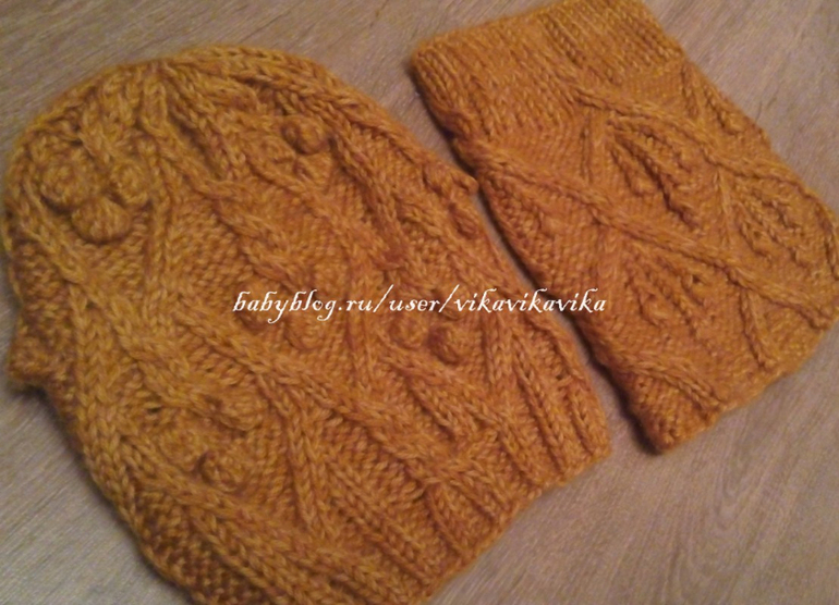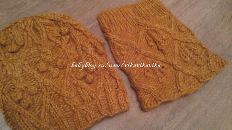 Комплект: шапка-снуд в модном сейчас горчичном цвете, смешала два оттенка