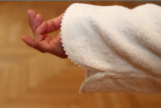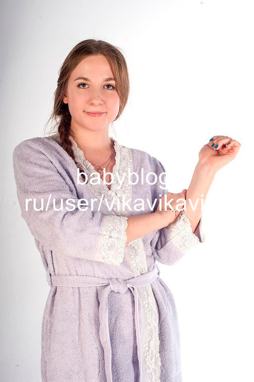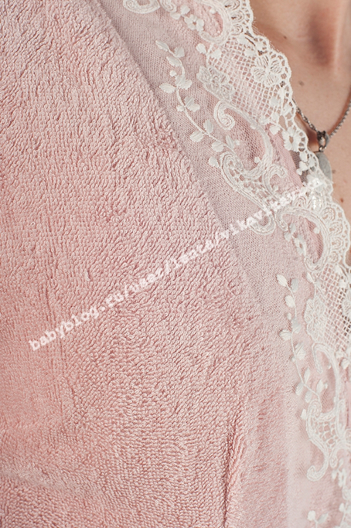 8. Махровый облегченный халат с капюшоном, гипюр по всему халату,