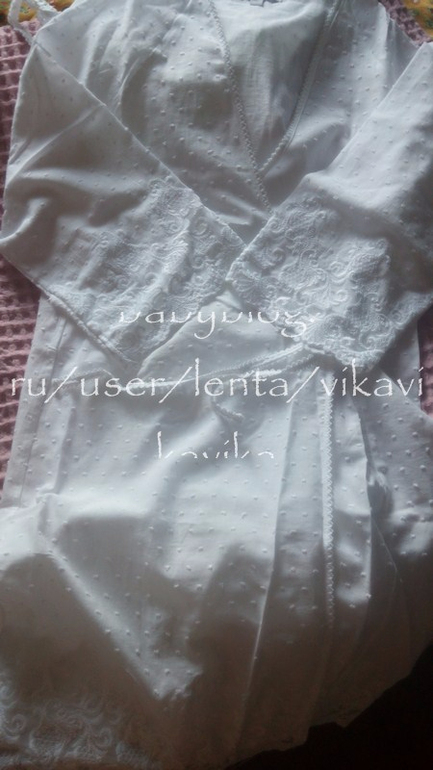 укороченный халат - махровая клетка с изысканной вышивкой - внешняя сторона клетка, внутреняя махра, приятная к телу и мягонькая.![]()