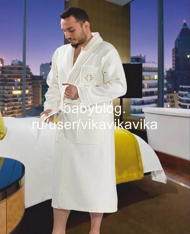 3. Большое банное вафельное полотенце 70х140 см, с декоративным кантом и вышивкой, как на халате.
