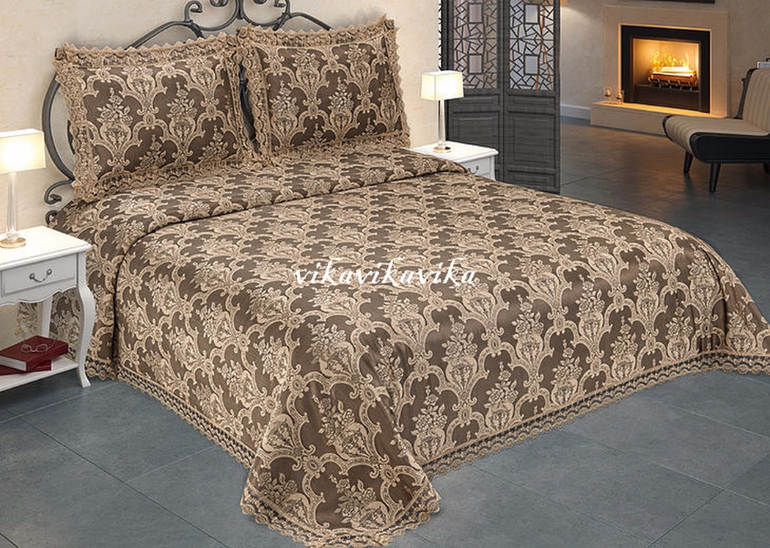 № 5 Покрывало жаккард с гипюром, из натурального хлопка