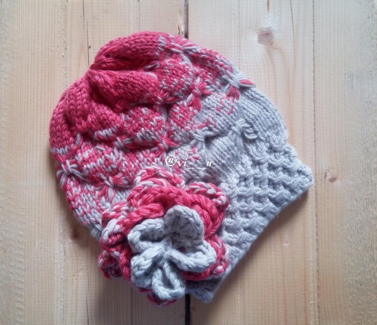 Шапка с косами.Благородный беж и пыльная роза на зиму супер, за счет кос очень теплая, градиент из двух цветов.