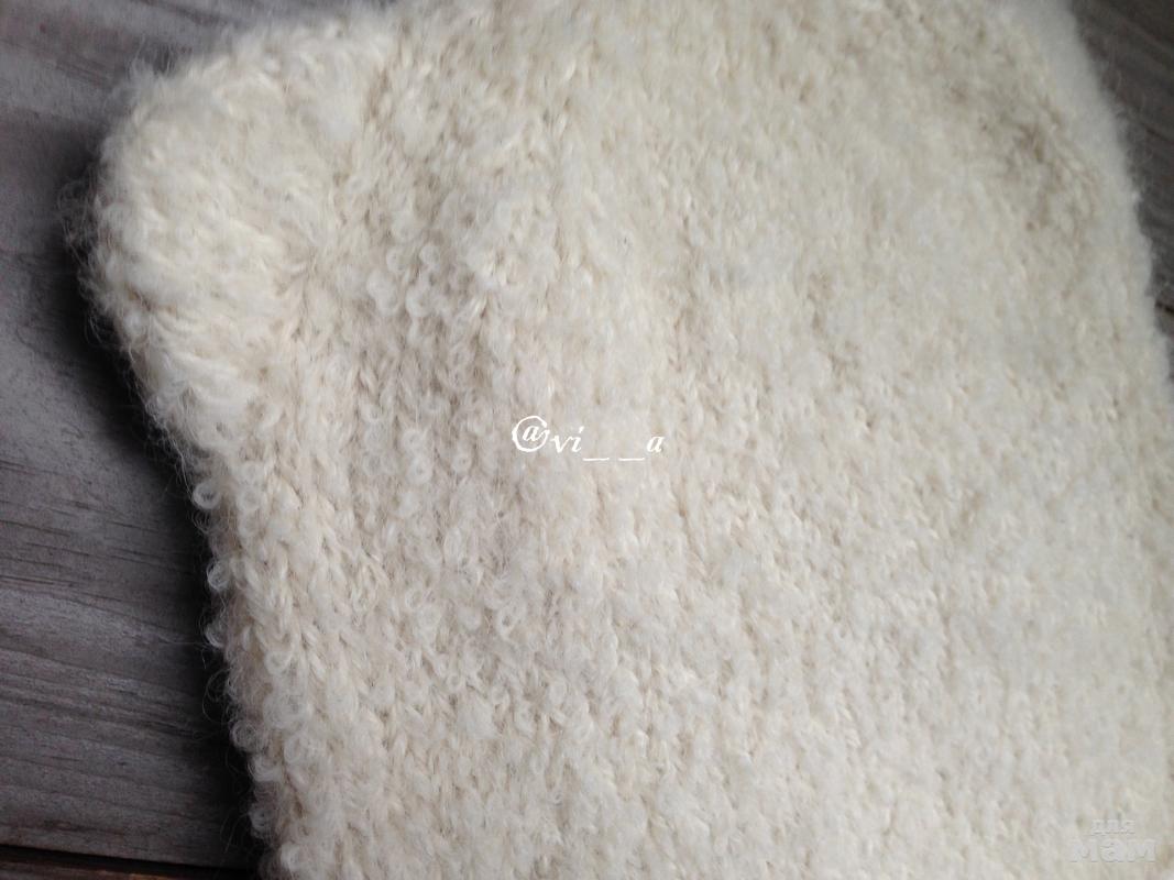 У варежек вязка двойная, удлиненная манжета, округлые, получилось все очень теплым, в составе пух беби альпаки, кидмохер и шелк.