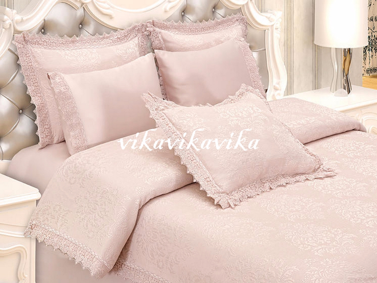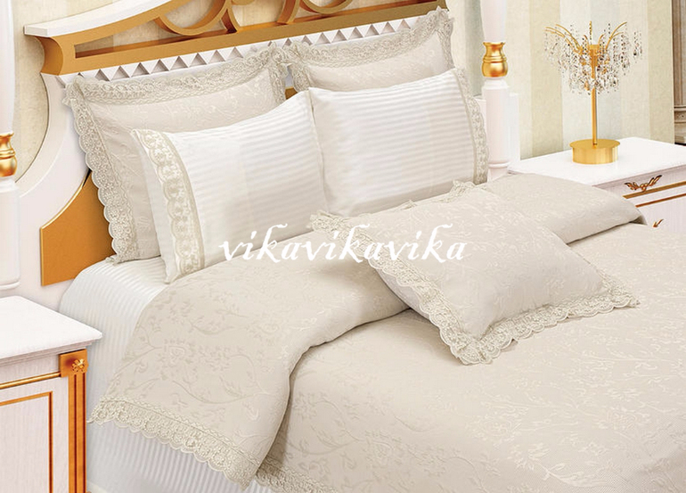 №9 Комплект покрывало, простыня и 5 наволочек из сатина и гобелена с гипюром. Для королевских особ. 4 цвета в наличии!