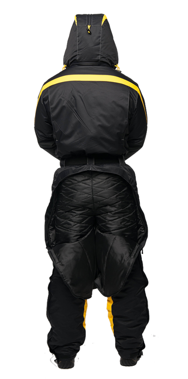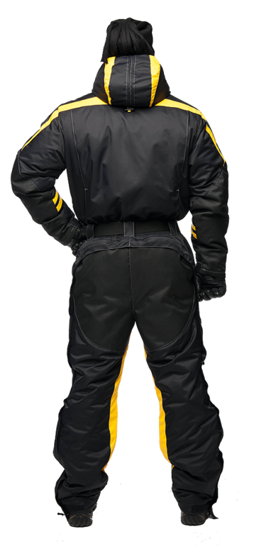 - от -15 С° до -40 С° - усиленная эксплуатация комбинезона в тандеме с согревающим термокомплектомСнегоходная экипировка представлена в контрастном цветовом сочетании желтого и черного. В качестве дополнительной отделки и для защиты в темное время суток, расположены ярко желтые вставки.
