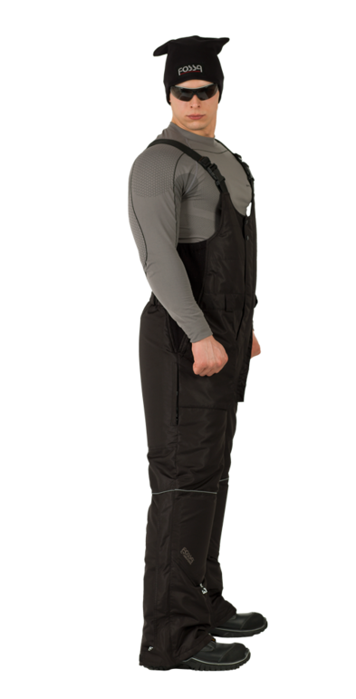 Полукомбинезон из мембранной ткани представлен в монохромном цветовом сочетании черного и светло-серого. Исключительно динамичный дизайн зимнего водо -грязе - ветрозащитного полукомбинезона. Как дополнительная отделка и защита в темное время суток - светоотражающие элементы.