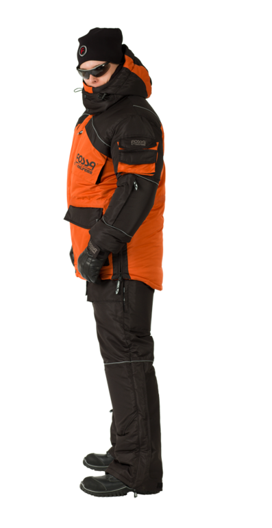 Зимний комбинезон из мембранной ткани предназначен в качестве самостоятельного изделия или в комплекте с согревающим термокомплектом № 16 или 17