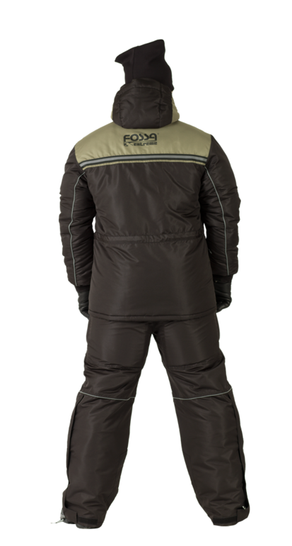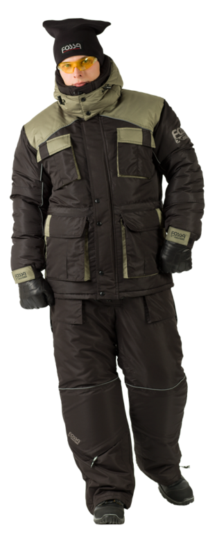 Комплект состоит из утепленных брюк и куртки с усиленными стегаными накладками на коленях, локтях и седалище брюк. Эргономика и анатомия комплекта сохраняющего тепло, максимально приближена к телу человека.
