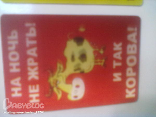Слыш мать ,я тут купила себе на холодильник вот такую вещь , но что то он, этот сраный магнитик ,не спасает , кто бы на него посмотрел если я хочу жрать ))) блин не переворачивается ))